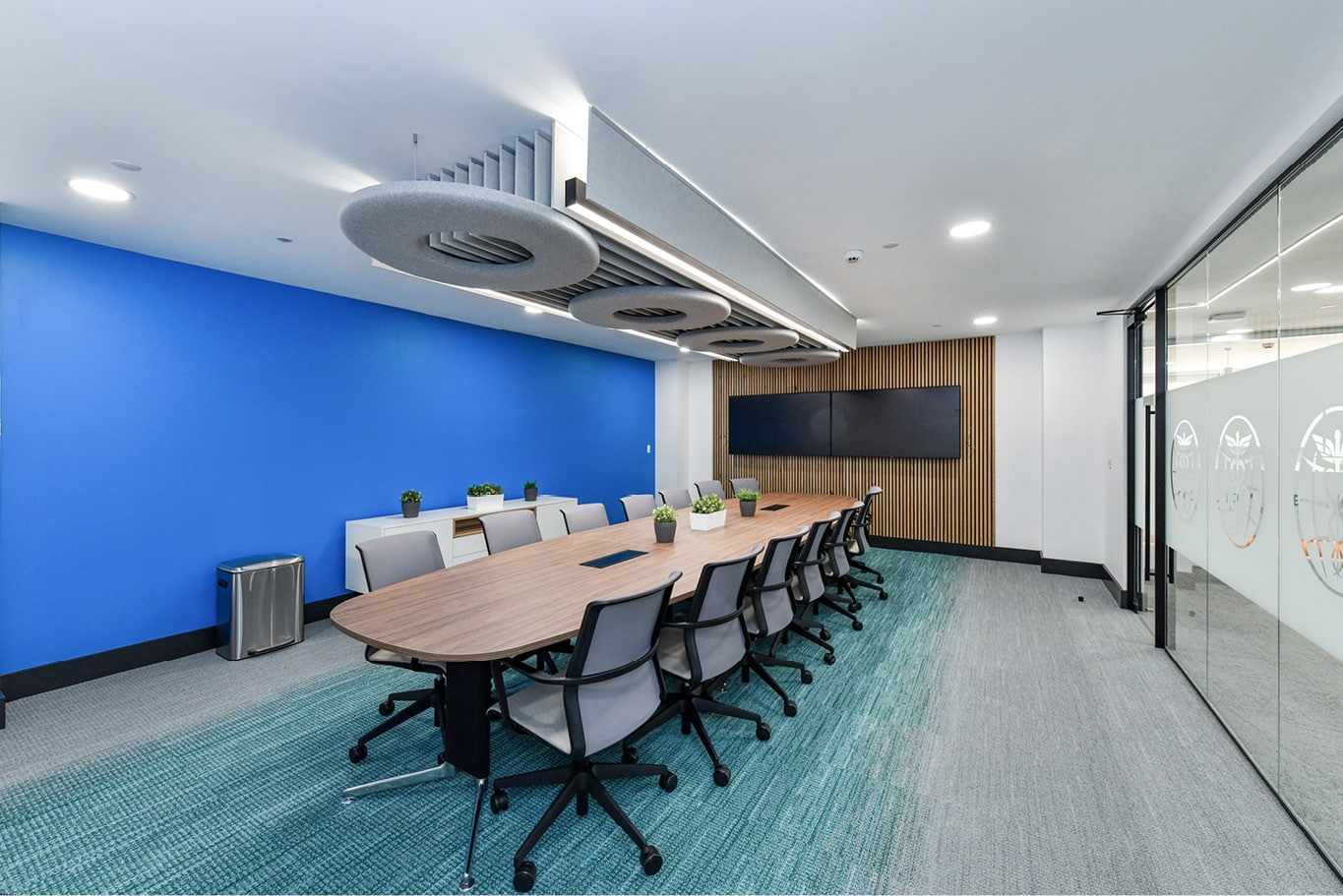 The designers chose Interface’s Woven Gradience collection to soften the transitions between different zones. Cool grey tones gently give way to brighter colors, creating a harmony between the residential and commercial influences without a harsh binary transition. Jordan Andrew, interior designer at Office Innovations, said: “With Woven Gradience, the injections of color don’t seem forced at all. Instead, the flooring sets the tone for each zone. In meeting rooms, for example, a different strip of color runs through the center of each one which subtly directs attention to the conversation going on and prevents these rooms from feeling identical.”
