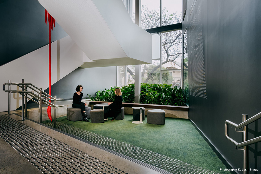 Situated in Adelaide’s historic suburb of Kensington, Pembroke Middle School is an innovative, multi-storey education facility spanning over 6,544m2. Designed by Grieve Gillett Andersen, the space features three distinct neighbourhoods: Art, Science and Technology. Centred around a light-filled atrium as its town square, this school brings to life the idea of a “learning village”.