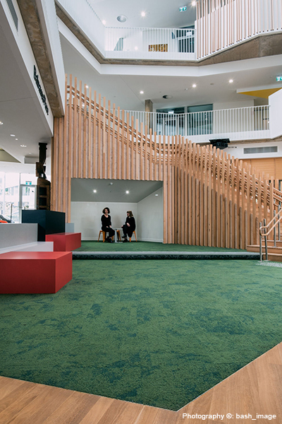 The standard colours and textures in the World Woven and Urban Retreat Collections met Grieve Gillett Andersen’s design brief. “We needed to tell a story with our design, and we were able to find a perfect match for the design vision in a number of carpet tiles,” Dimitty explains.