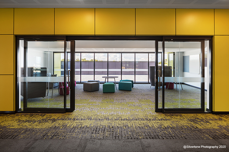 Due to the biophilic nature of the St John Bosco College project, the Human Connections Collection was specified as the hero product. A play on connections in our urban landscape, the unique textures and patterns can be used to create paths, intersections, zones and destinations ideal for the demands of flexible learning spaces. Strategically laid with other elementary and earthy products, World Woven and Near & Far, the Human Connections product provided pops of colour taking cues from the school’s natural surroundings. In an education facility, applying biophilic design concepts can improve mental concentration and focus, enhancing students’ learning capacity.