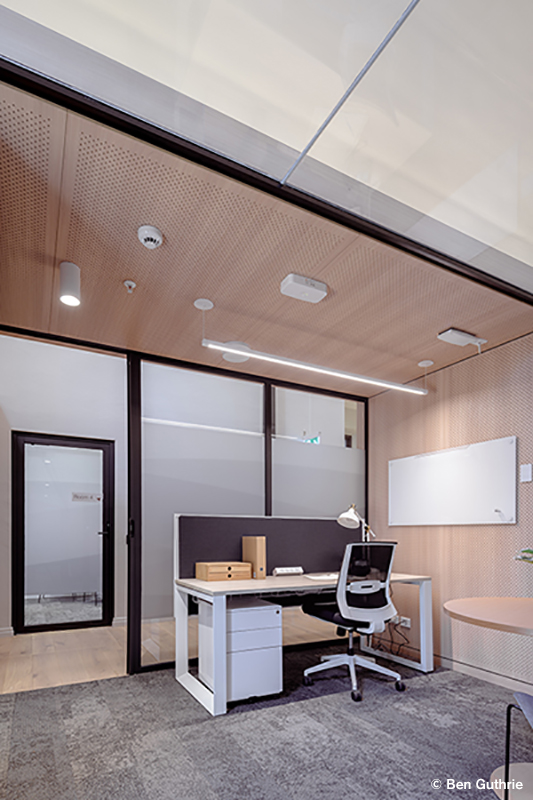 Similarly, the unimposing pattern of the Nimbus carpet tile in a subdued Graphite shade brings a sense of softness and safety to some of the key areas that encourage interactions, including the mezzanine break-out space, the office spaces and to the multipurpose room.